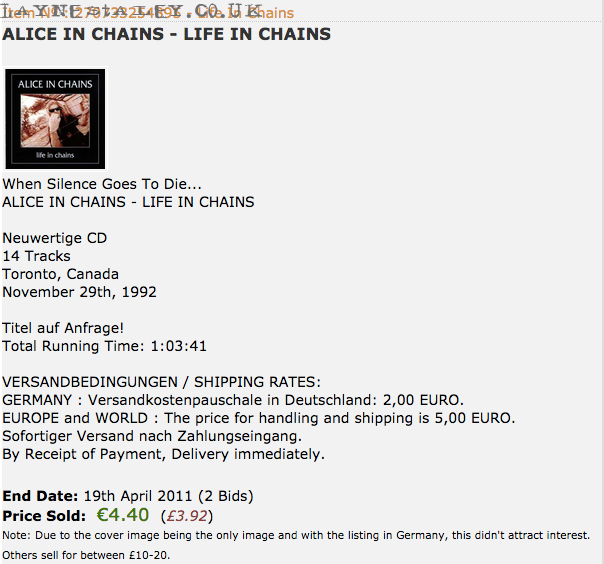 This is one the rarest AIC items to ever hit ebay. No, it is not signed by Layne but in truth, Mike Starr autographs are way harder to find then Laynes. I mean, there is always 5-10 real Layne's on ebay but I have only seen a few real Mike Starr era signed items ever. Layne and the band signed a lot of items in Seattle for the collectors there and all over the US while on tour but Mike as booted out really early so you just don't find stuff signed by him often. There is a really nice authentic Face Lift framed flat on ebay right now in fact.