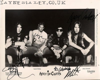 Note: Signatures from AiC from this era have rocketed. looks genuine, have seen many auto's like the one of Layne's here. Also see the comment "& Cantrell". With no proof of signing, results are hesitant as many fakes exist.