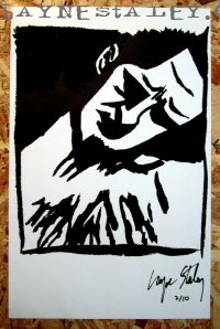 Full Layne Staley Signature on back. Very rare to acquire full signature because he usually signed only first name. Original Artwork Print. Layne Staley front signature is printed on. Numbered Limited Edition # 2 out of 50.